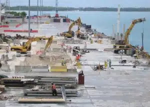 This project included demolition of a 41,000SF x 14" concrete wharf deck midsection with 9300SF - 3' thick reinforced concrete utility trenches and 3’ thick crane platform. New work included on-site casting, load ...